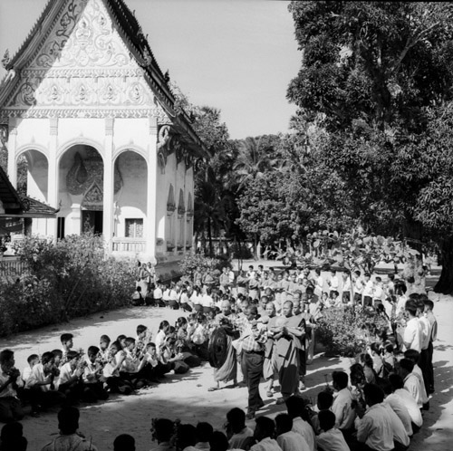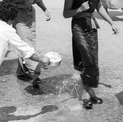 During the Lao (Buddhist) New Year Festival in April each year, as a gesture of deep respect, lay people splash water on the monks and novices as they pass by in the annual parade. Archive No. 503-09